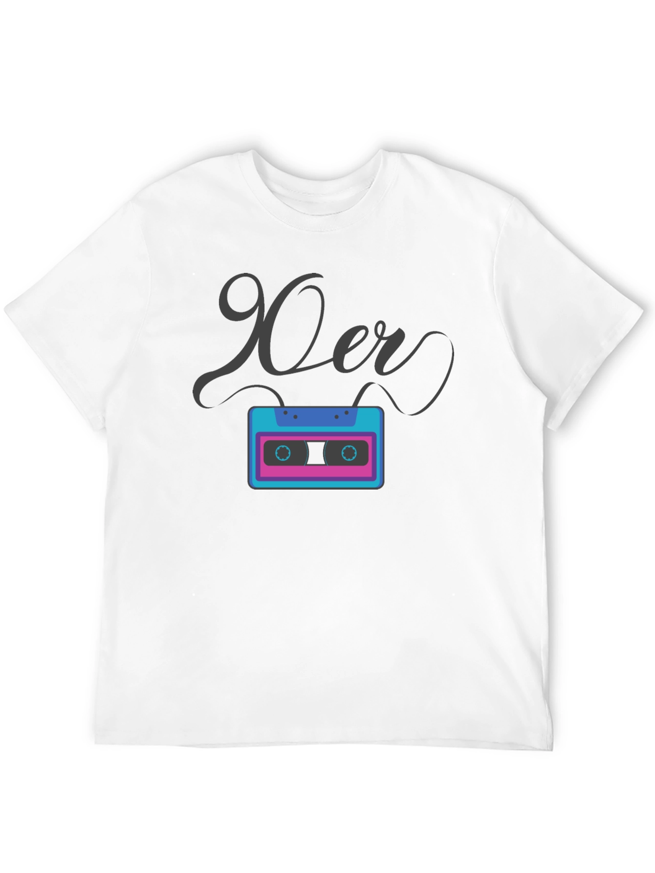 Step back in time with this vintage-inspired graphic t-shirt. Featuring a vibrant cassette tape design with a bold '90er' script, this tee is a nostalgic nod to the iconic decade. The shirt appears to be made from a soft, comfortable black fabric. The cassette tape design is rendered in eye-catching hues of blue and pink. Ideal for casual outings, retro-themed parties, or simply expressing your love for the 90s, this t-shirt is sure to spark conversations and turn heads. Perfect gift for the 90s music lover in your life.
