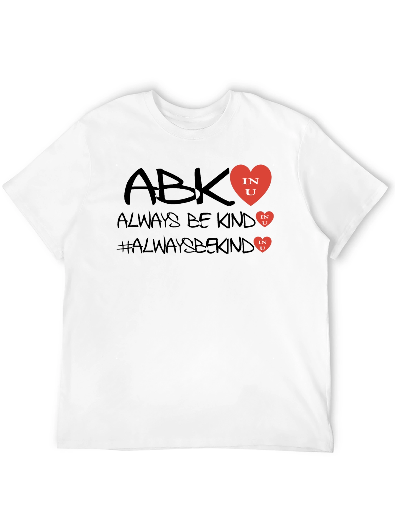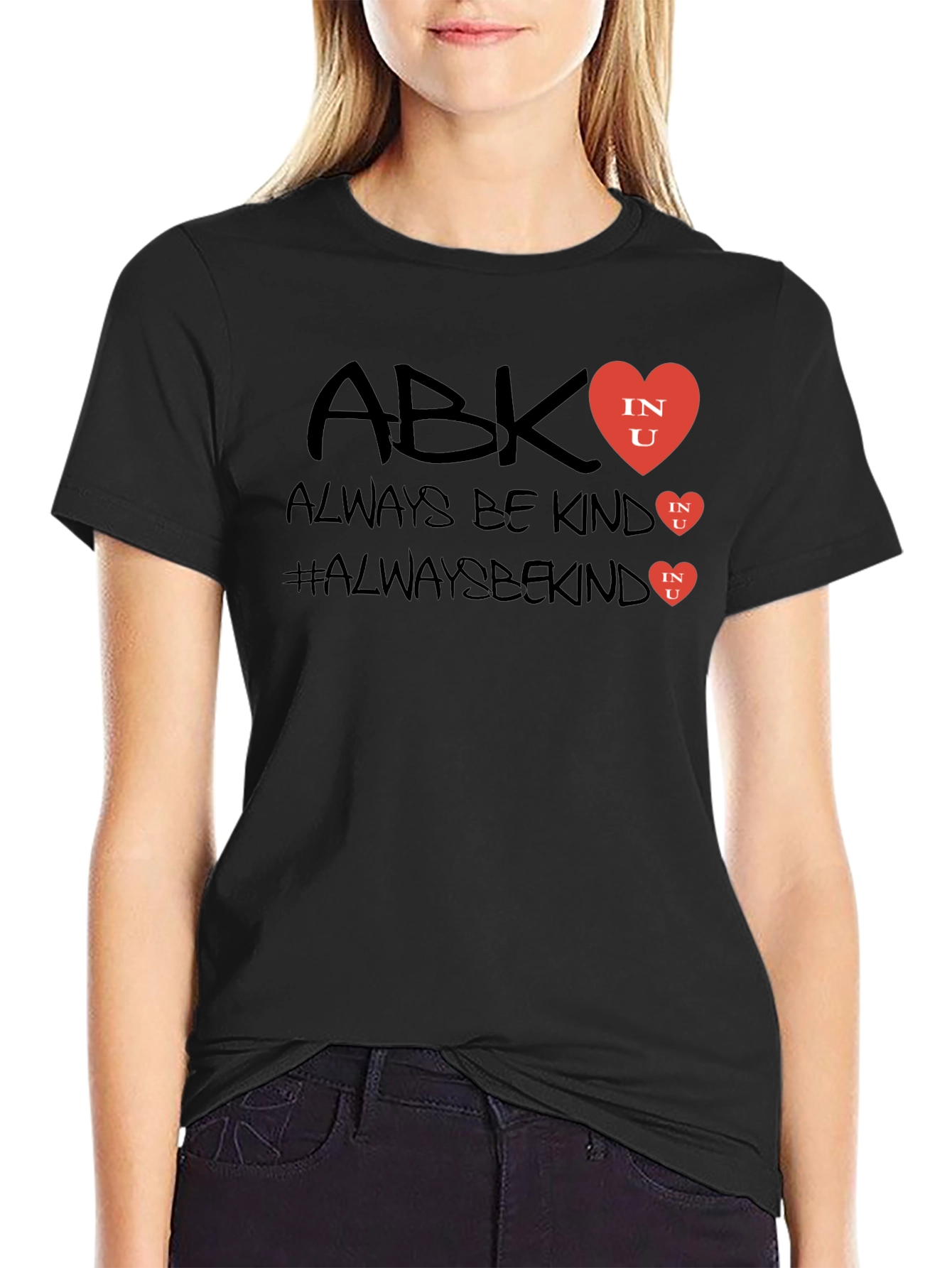 Show off your kindness with this stylish graphic tee! This black t-shirt features the design "ABK Always Be Kind #AlwaysBeKind" with red heart accents containing the letters "IN U". The shirt has a classic fit and a comfortable feel, making it perfect for everyday wear. This tee is sure to spread a positive message wherever you go. It's a great way to express your values and inspire others to be kind as well. Wear it to school, work, or when you're out and about to make a statement and add a touch of positivity to your wardrobe.