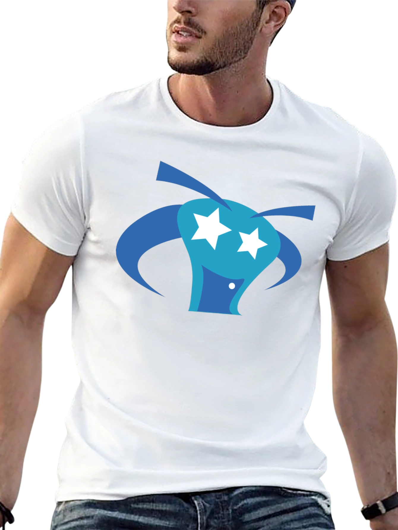 Show off your unique style with this eye-catching black graphic tee. The shirt features a bold, abstract design in cool blue tones, complete with star accents. Made from a comfortable cotton blend, this tee is perfect for everyday wear. Whether you're heading to a casual hangout or simply expressing yourself, this tee will make a statement. The classic fit and soft fabric ensure all-day comfort. Add some personality to your wardrobe with this standout piece!