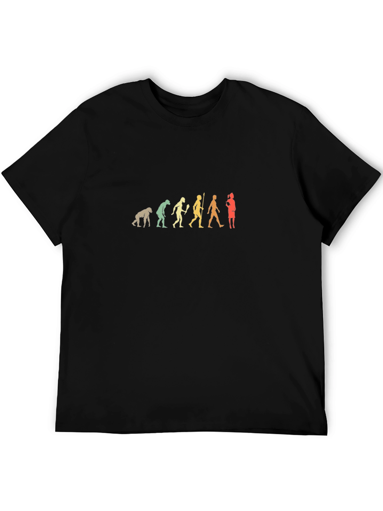 Show off your love of women's progression with this stylish black t-shirt. The shirt features an artistic rendering of the evolution of women from ape to modern woman, depicted in a retro color palette. Made from comfortable, breathable fabric, this tee is perfect for everyday wear. Wear it casually with jeans or dress it up with a blazer. Ideal for casual outings, lounging at home, or making a statement about women's empowerment. A great gift for the strong woman in your life!