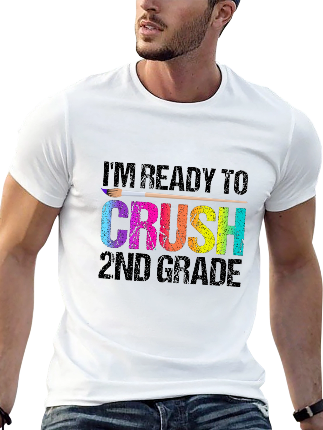 Show your excitement for the new school year with this vibrant "Ready to Crush 2nd Grade" T-shirt! The design features a colorful "CRUSH" graphic in rainbow hues, complete with a paintbrush detail. Made from a soft, comfortable black fabric, this tee is perfect for students ready to take on the challenges of 2nd grade. Ideal for wearing to school, field trips, or any casual occasion, it's a fun and stylish way to express your enthusiasm for learning. Get ready to make a statement and inspire your classmates with this unique and eye-catching shirt!