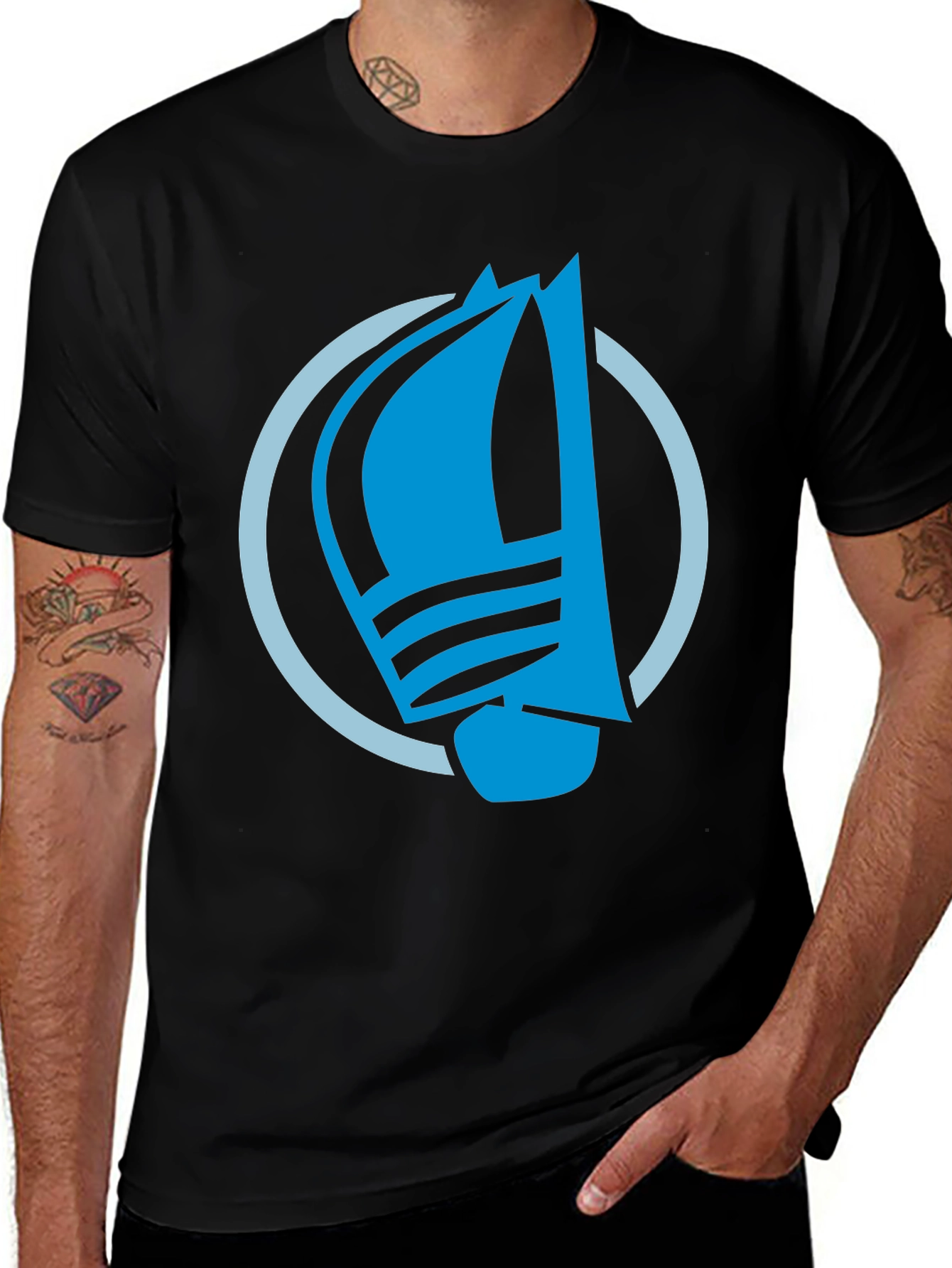 Showcase your love for the sea with this stylish black t-shirt. Featuring a bold, blue graphic of a sailing boat encircled by a light blue ring, this tee offers a unique and eye-catching design. The comfortable fit and classic cut make it perfect for everyday wear. Crafted from a soft and breathable fabric, this t-shirt will keep you feeling cool and comfortable all day long. Ideal for casual outings, weekend adventures, or simply relaxing at home, this sailing boat t-shirt is a must-have addition to your wardrobe. Whether you're a seasoned sailor or simply appreciate nautical themes, this shirt is sure to make a statement.