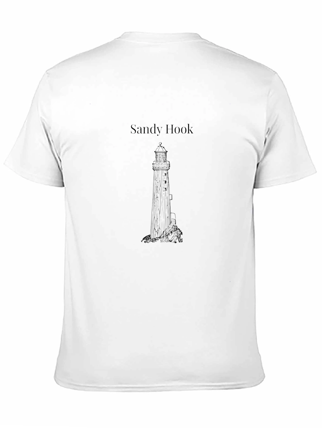 Show your love for Sandy Hook with this classic black t-shirt. This comfortable tee features a detailed graphic of the Sandy Hook Lighthouse, accompanied by the words "Sandy Hook". Made from a soft, breathable fabric, this t-shirt offers all-day comfort and is perfect for casual wear. The simple, understated design makes it versatile for various occasions, from relaxing at home to exploring the outdoors. It is a great way to express your connection to this iconic landmark. Get yours today!